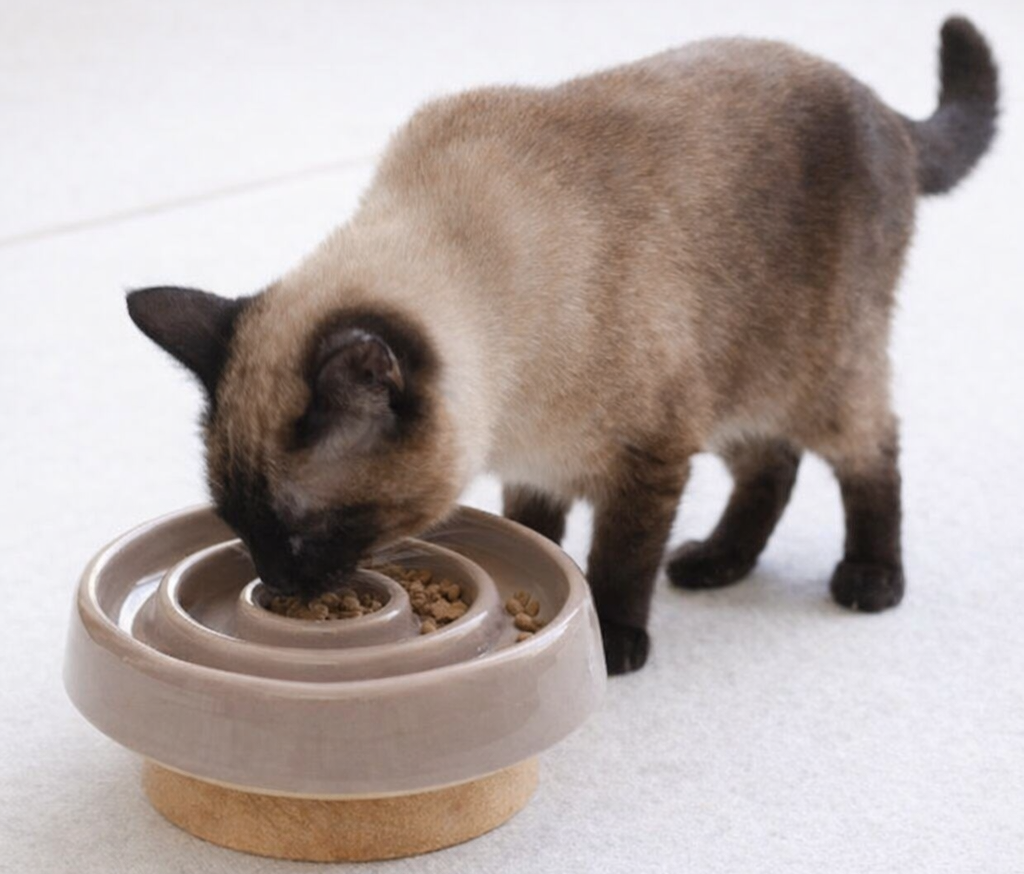 Handcrafted ceramic bowl designed to slow down your cat’s eating, reducing vomiting and improving digestion naturally.